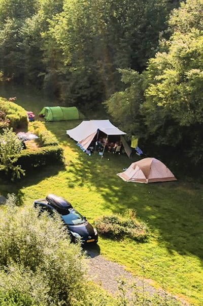 Very suitable for families with children because the bank gradually changes into the river (the river is 30cm deep) so children can play in the river. Spacious pitch (9.5 by 8 metres) with own power point, afternoon sun. Ideal for booking with 2 families as there is no hedge between the 2 pitches.